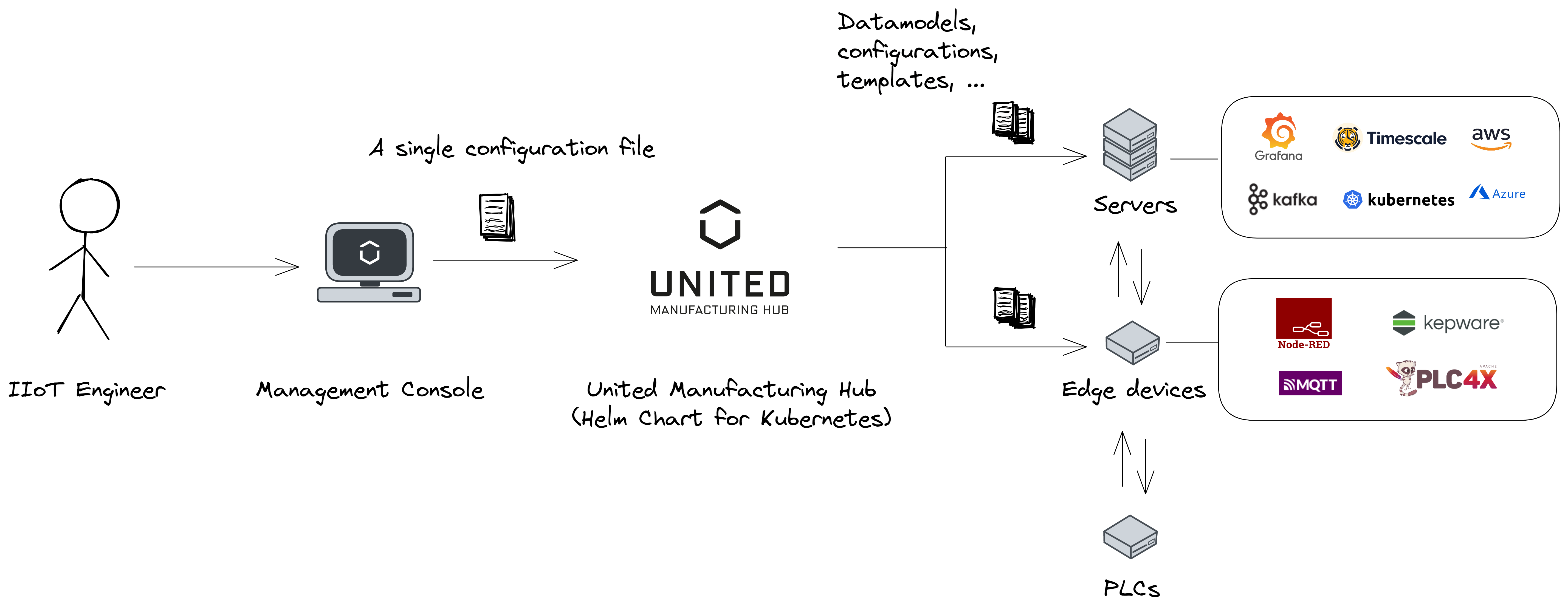 The IIoT Engineer can install and maintain the entire IT / OT infrastructure using the United Manufacturing Hub.